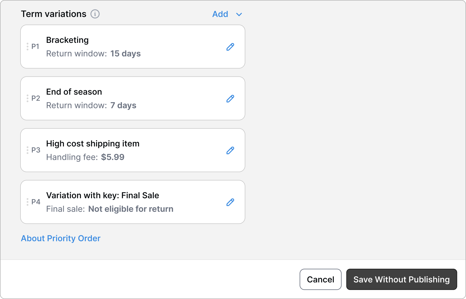 Customize unique return conditions for specific cases or product categories, giving merchants full control over options in policy personalization.